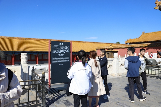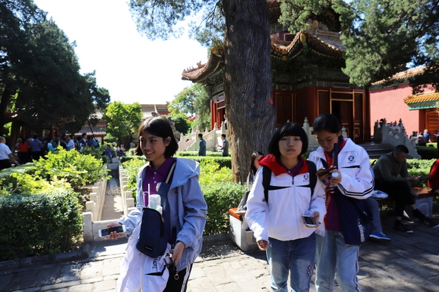 随后,同学们开始了自由游园活动。大家在各宫殿前看雕梁画栋,在各馆室里品历史故事,在御花园里赏奇花异木,许多同学在参观的过程中还做了笔记。一个上午很快就过去。