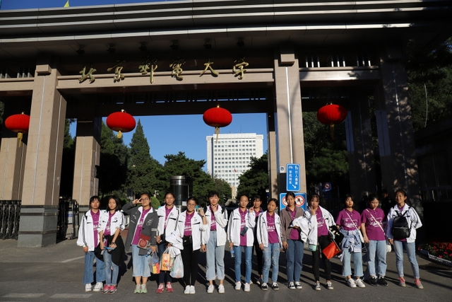 一批同学来到北京航空航天大学,他们的学长——今年以耒阳市理科第一名的成绩考入北航的黄详同学听说学弟学妹来了,特地乘车1个多小时从沙河校区赶到海淀校区。见到学弟学妹,他分外高兴,热情地向同学们介绍学校情况。10多位同学慕名去了北京电影学院,参观校史馆、图书馆。有一批同学希望今后能成为一位优秀的人民教师,他们特地参观了北京师范大学,了解学校专业设置、专业特色等,为自己今后择业作准备……整个下午,同学们分批还探访了中国传媒大学、中国地质大学、北京理工大学、北京科技大学、中央戏剧学院等院校。