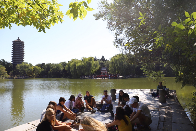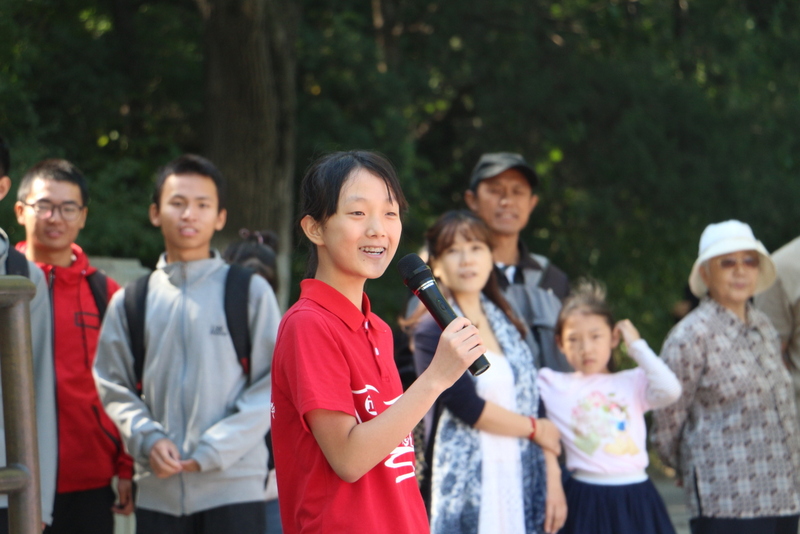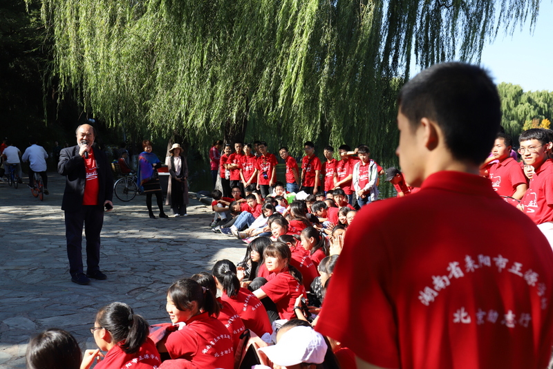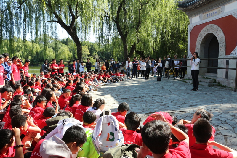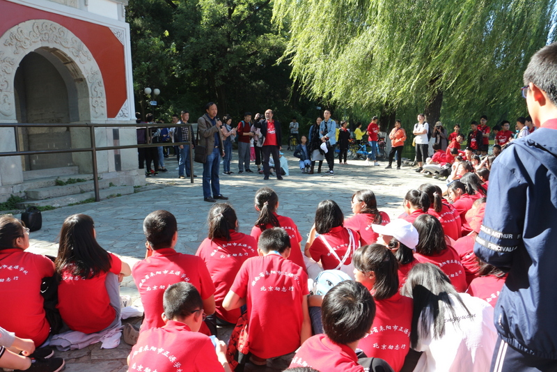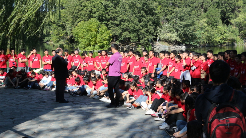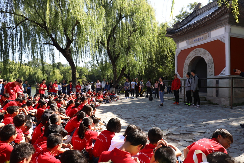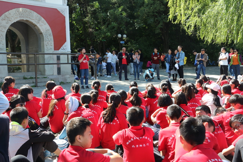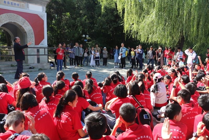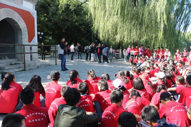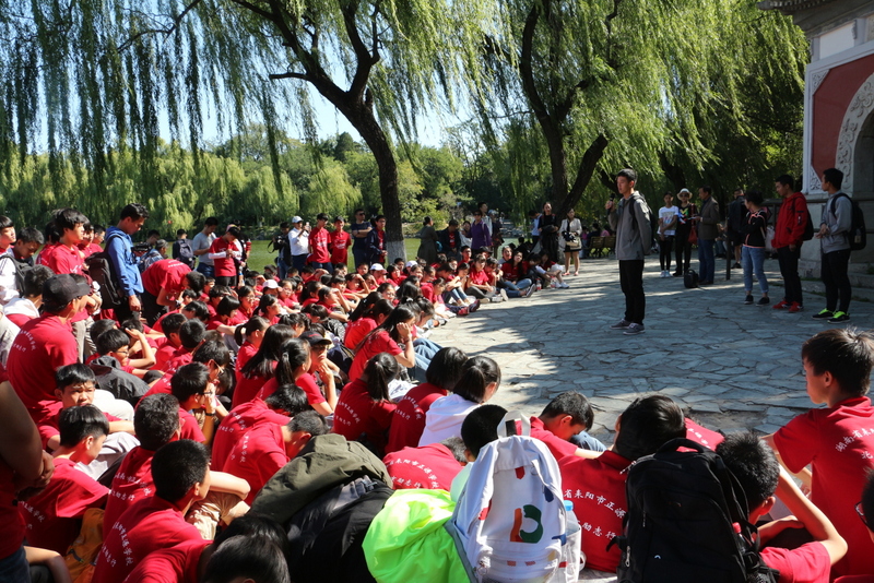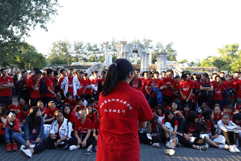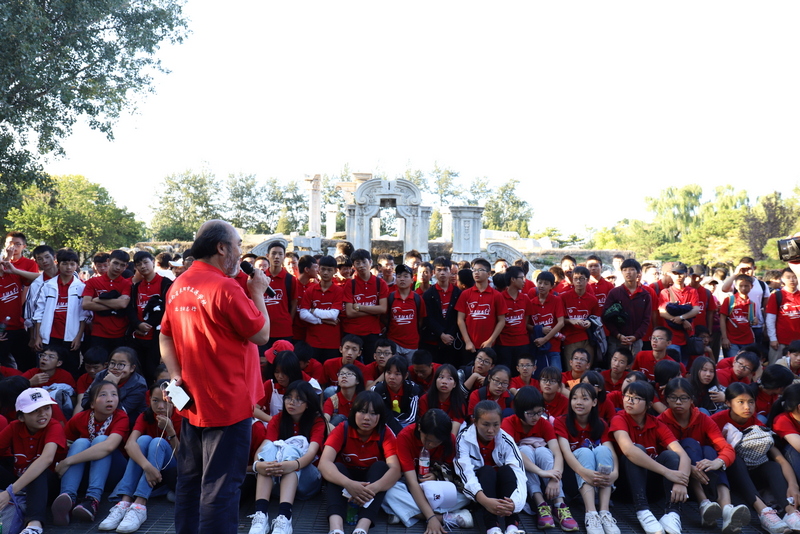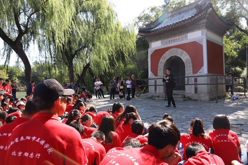 圆明园是正源北京励志行必经一站,不忘国耻,发愤图强是正源人励志的必修课。在圆明园内大水法遗址前,励志团队席地而坐,共话爱国情怀。罗校长发表了简单而又寓意深刻的讲话,并要求每个小组派两个代表发言。同学们面对残垣断壁深思熟虑,从课本上的图片到触手可及的历史遗物,一段段发自心底的发言,引起游客纷纷驻足倾听。