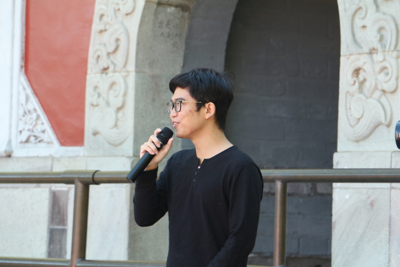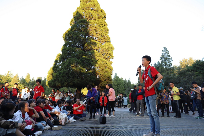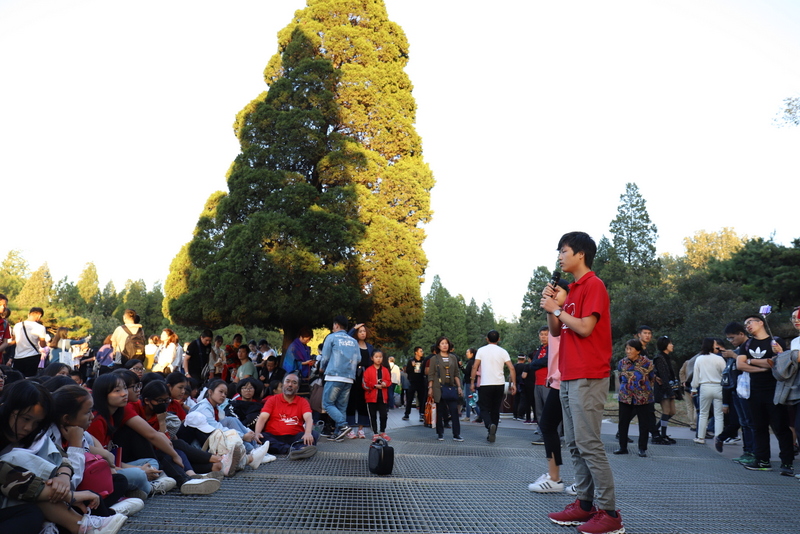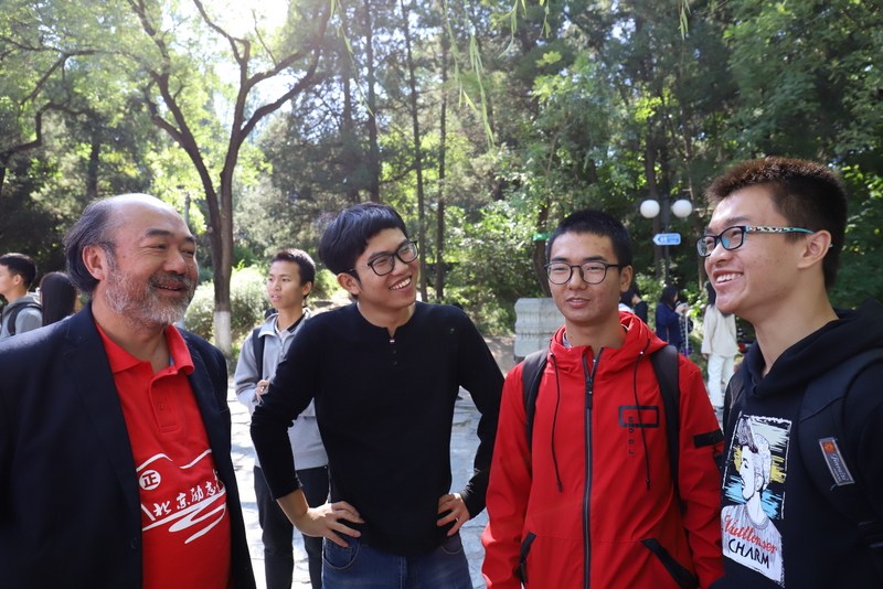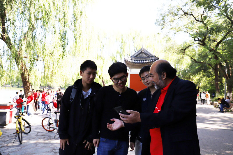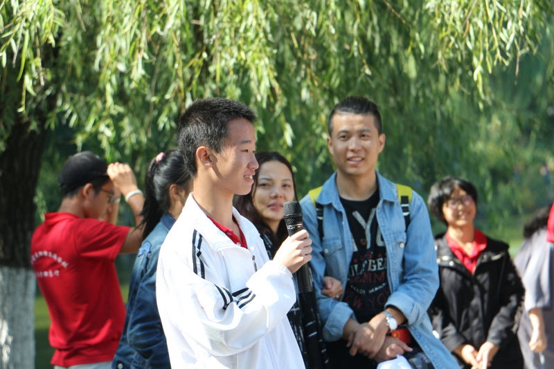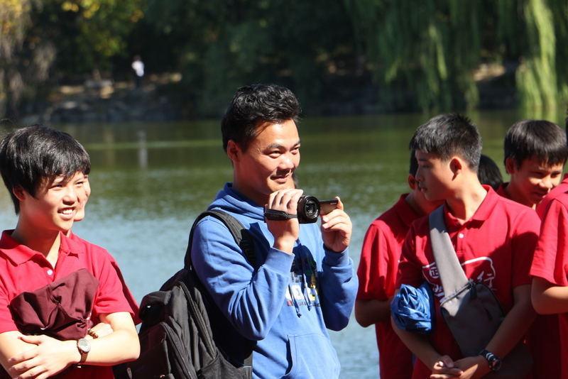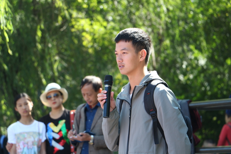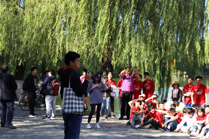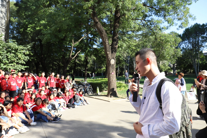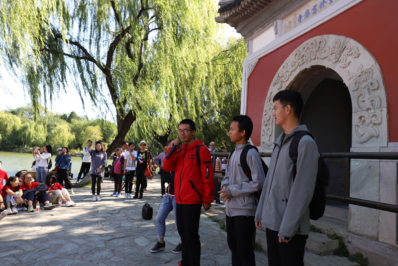 在清华大学安保人员的带领下,励志团队沿清华校园林荫大道缓缓而行,探访校园深处。学长周孝金得知学弟学妹来校参观,主动担起了导游。