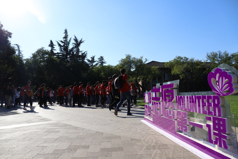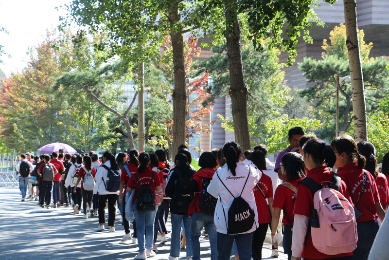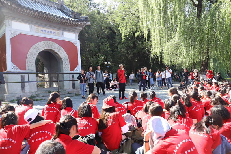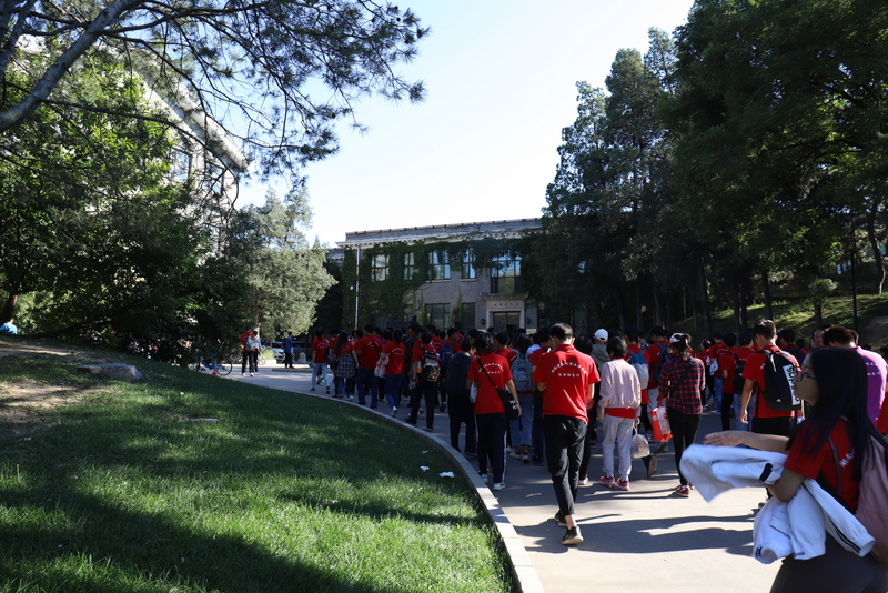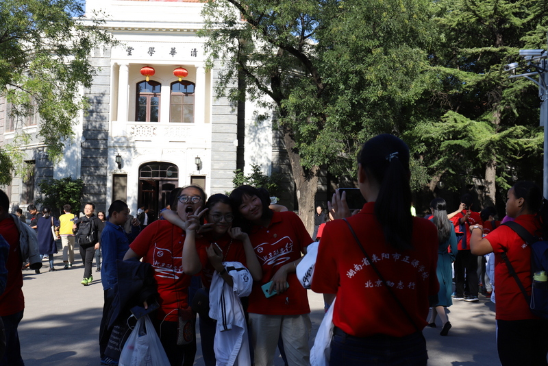 下午2点,同学吃完中餐后,在清华大学东门整队集合,探访梦寐以求的最高学府。