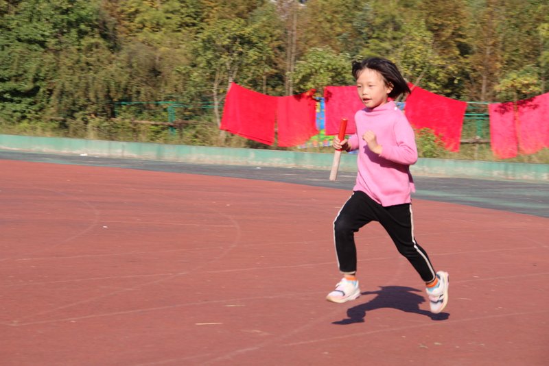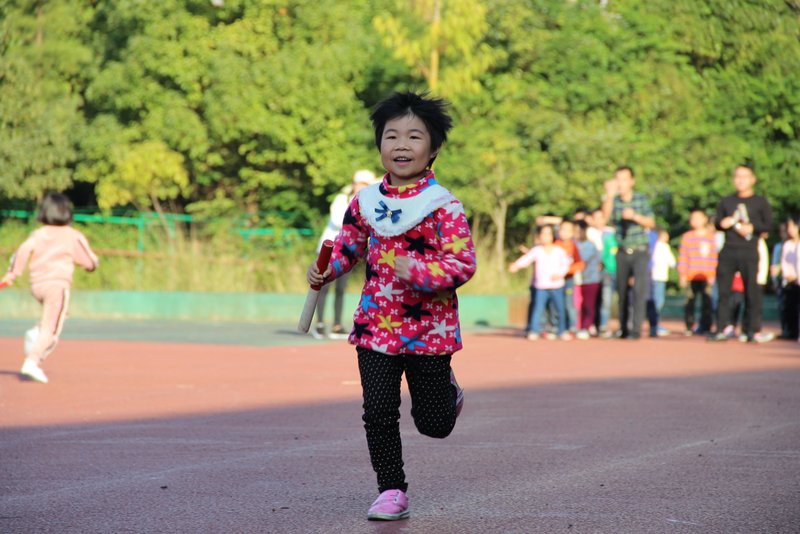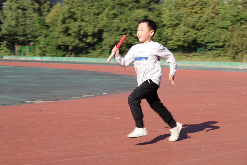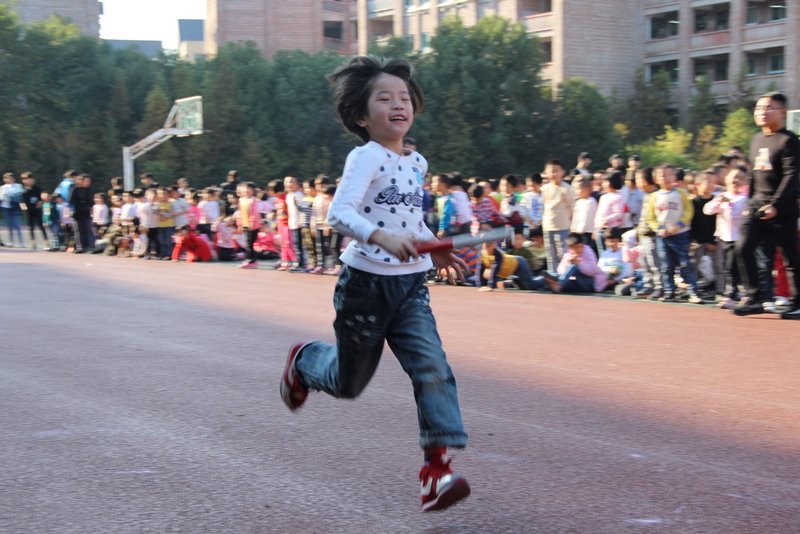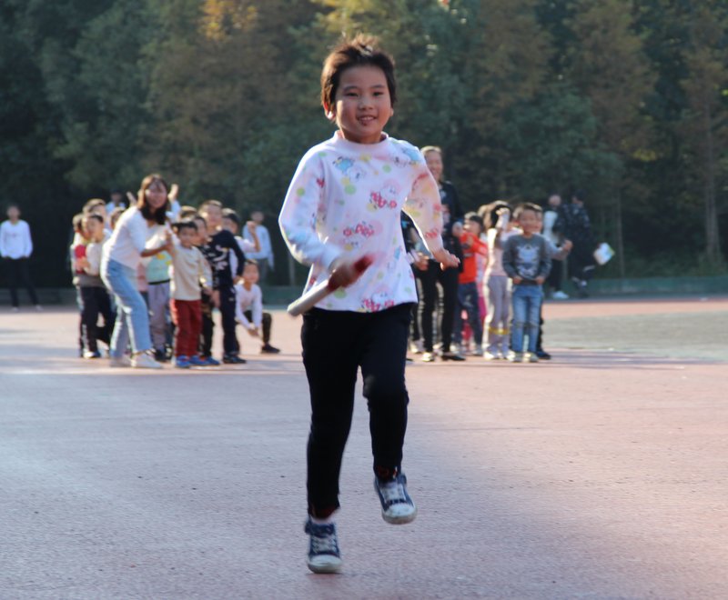 第一组是350班、351班、352班,孩子们踏着坚定的步伐走上各自的赛道,随着一声哨响,比赛开始,平时看似温文尔雅的学生都犹如离弦之箭般飞射而出。只见351班位于第一棒的同学如脱缰的野马狂奔出去,其他两个班级同学也不甘示弱奋起猛追,最终还是351班略胜一筹。