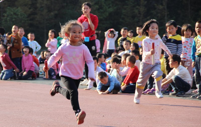 本次比赛小学一年级九个班级456名同学全部参加,每班选取20名男生,10名女生参加比赛。比赛分为三组,每组三个班,各班学生分成2组相隔50米对面站立, 队员在规定接力点接棒后迅速跑送给对面下一个队员,依次进行,直至最后一人跑完50米算全部完成。
