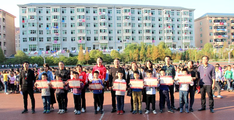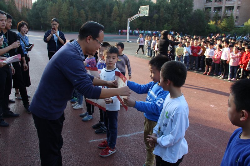 赛后学部罗俊豪主任为获胜班级颁奖并合影留念,本次一年级班级迎面接力赛也取得圆满成功。