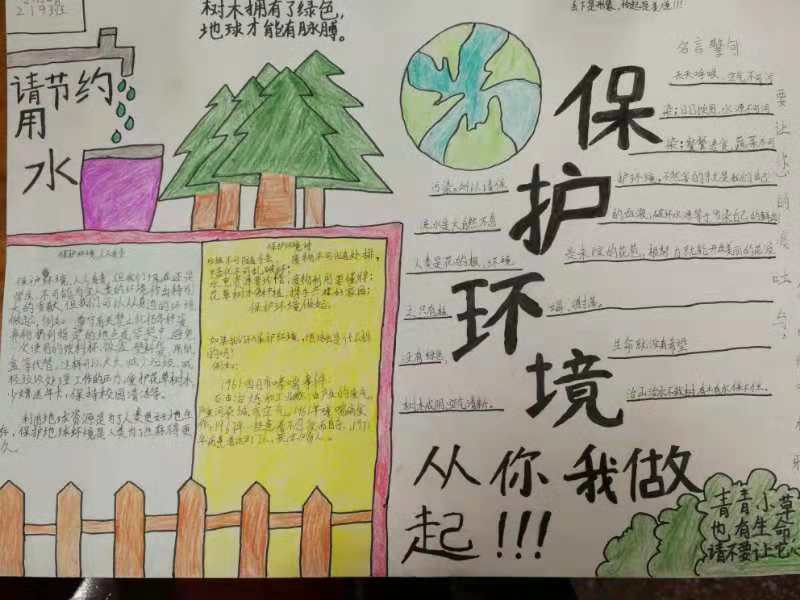 为了培养学生的绿色意识,让绿色生命激发他们热爱生活、热爱学习的情怀,五年级14个班909人在11月7日 开展了“保护环境,你我同行”为主题的手抄报比赛活动。