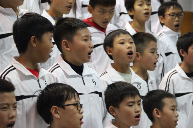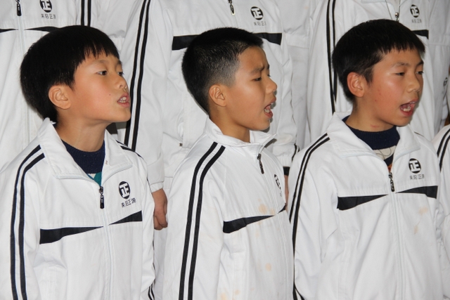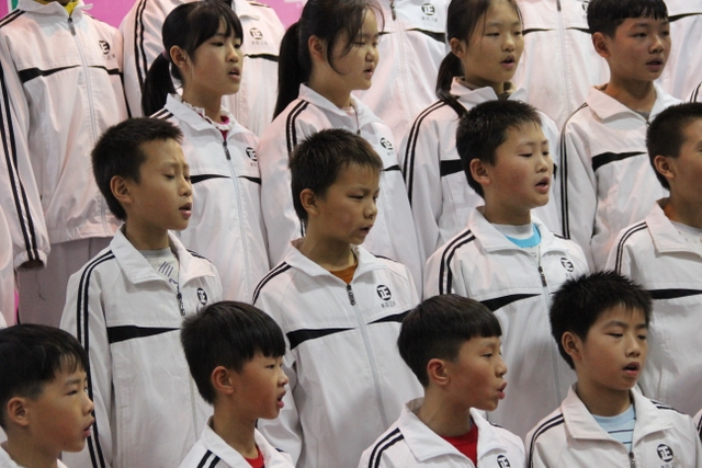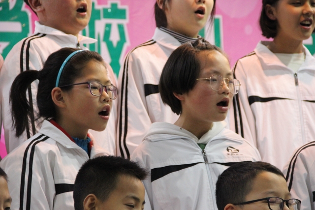 比赛中,班主任全程跟班组织,各班学生队伍整齐、精神抖擞、歌声嘹亮,气势磅礴的大合唱博得了现场阵阵热烈的掌声,展现了正源学子朝气蓬勃、积极向上的精神风貌。优美、动听的歌曲,把比赛活动不断地推向高潮:一首嘹亮的《红旗飘飘》唤起了孩子们慷慨报国的凌云壮志;一首《大中国》唱出了同学们心中的无比自豪;一首《太阳出来喜洋洋》唱出孩子们内心的欢快与自信,还有耳熟能详的《朋友》、广为传唱的《童年》一次次轰动全场……