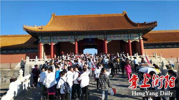 10月1日,看完升旗仪式后,师生们吃完早餐,向故宫进发。
