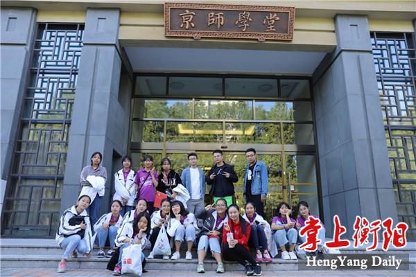 一批同学来到北京航空航天大学,他们的校友、今年以耒阳市理科第一名的成绩考入北航的黄翔同学听说学弟学妹来了,特地乘车1个多小时从沙河校区赶到海淀校区。见到学弟学妹,他分外高兴,热情地向同学们介绍学校情况。10多名同学慕名去了北京电影学院,参观校史馆、图书馆。有一批同学希望今后能成为一位优秀的人民教师,他们特地参观了北京师范大学,了解学校专业设置、专业特色等,为自己今后择业作准备……整个下午,同学们分批还探访了中国传媒大学、中国地质大学、北京理工大学、北京科技大学、北京邮电大学、中央戏剧学院等院校。