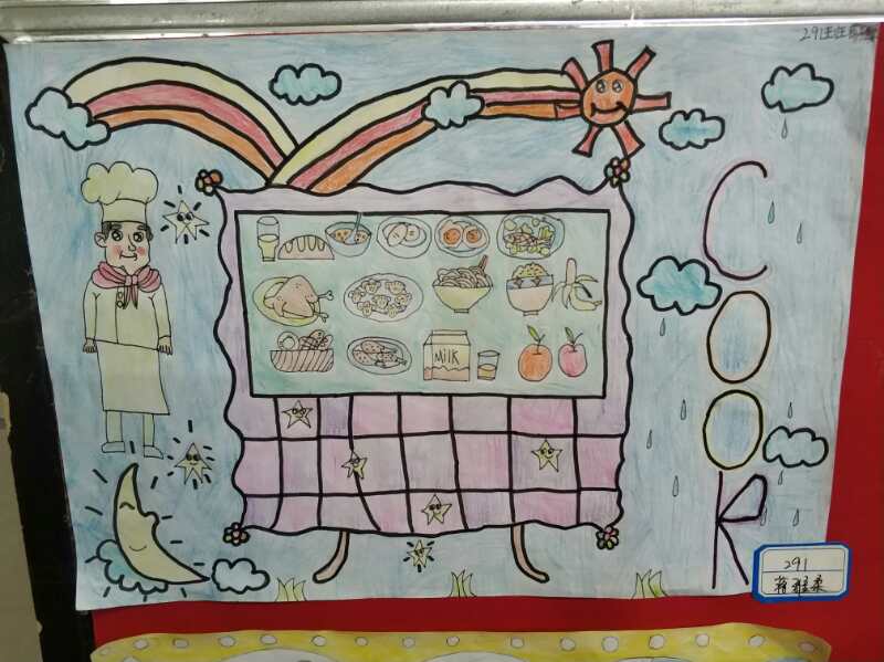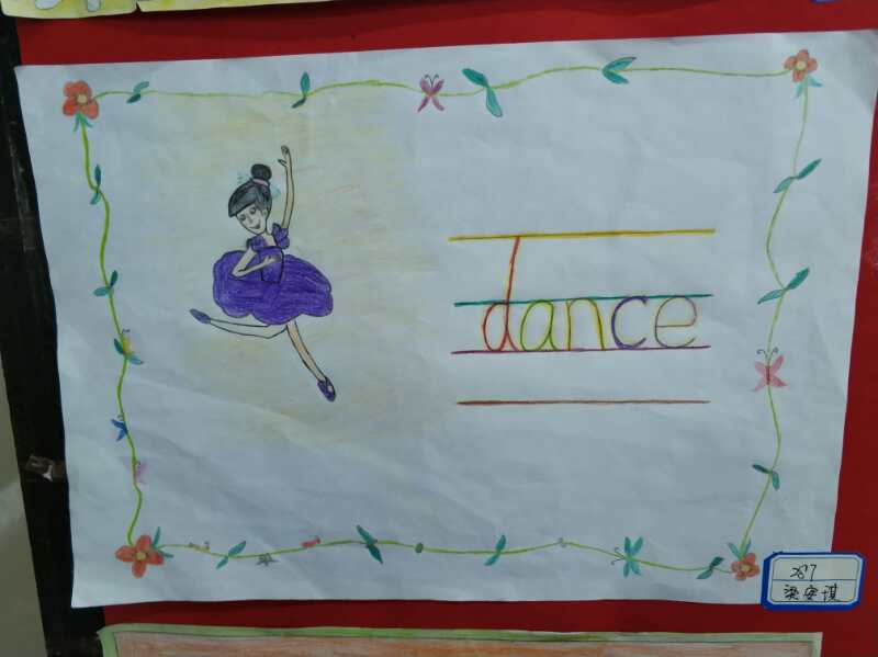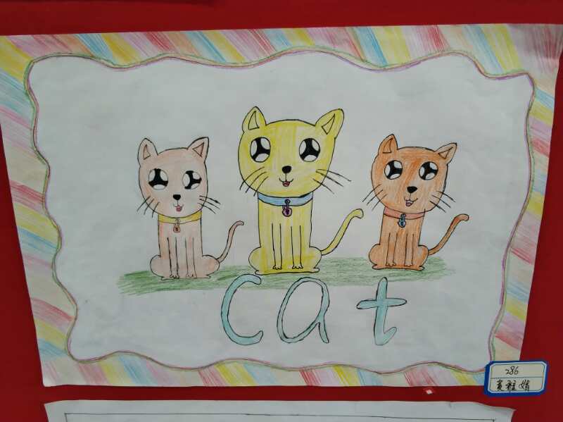 那一幅幅充满创意的画卷,真是一场视觉盛宴。看,287班梁安琪同学设计的“dance”,一名美少女,翩翩起舞,像一只骄傲的天鹅;瞧,291班蒋雅柔同学设计的“cook”,一顿丰盛的午餐,让人垂涎三尺,这一定是一名了不起的厨师;看,286班黄雅娟同学设计的“cat”,三只萌萌哒的小猫,眼泪汪汪地望着你,有没有被萌翻?......