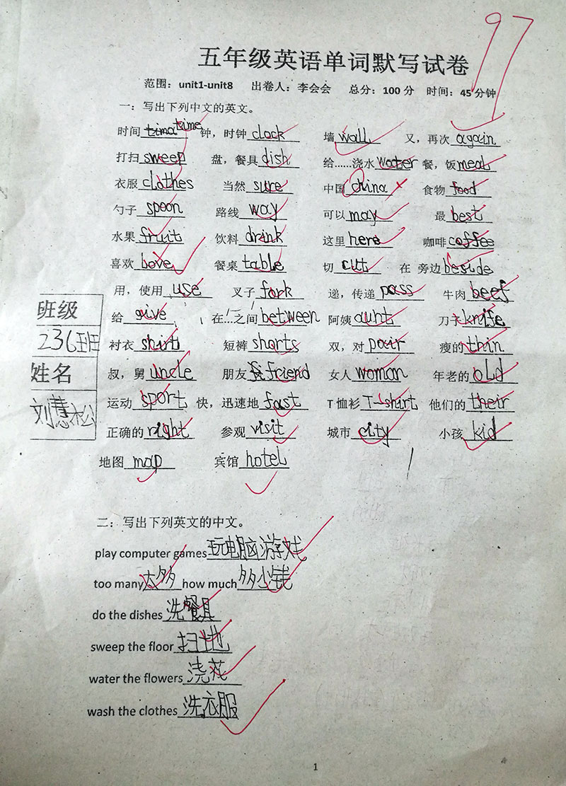 通学部五年级英语单词默写比赛获奖名单 | |||||