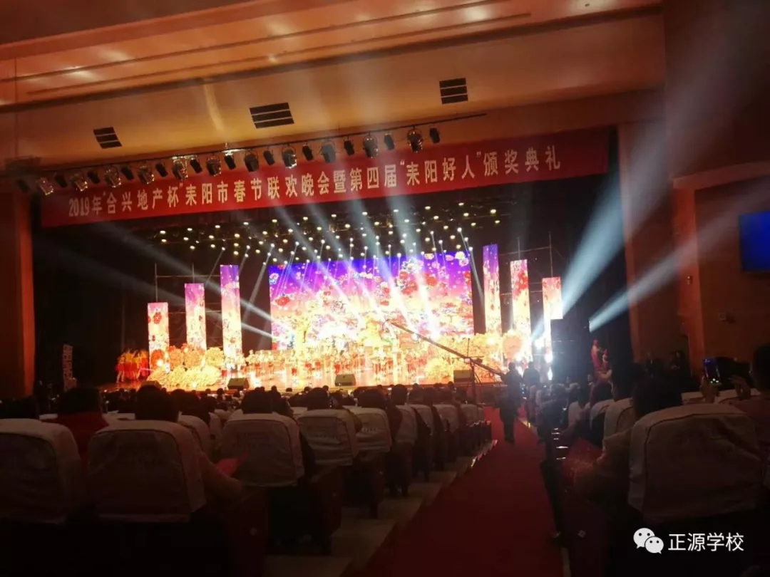 昨晚,我校精心排练的大型歌舞《金猪送福春来到》再一次作为耒阳春晚的开场舞,为耒阳市2019年春节联欢晚会暨第四届“耒阳好人”颁奖典礼拉开序幕。本次活动由耒阳市委、市政府主办,耒阳市委宣传部承办。