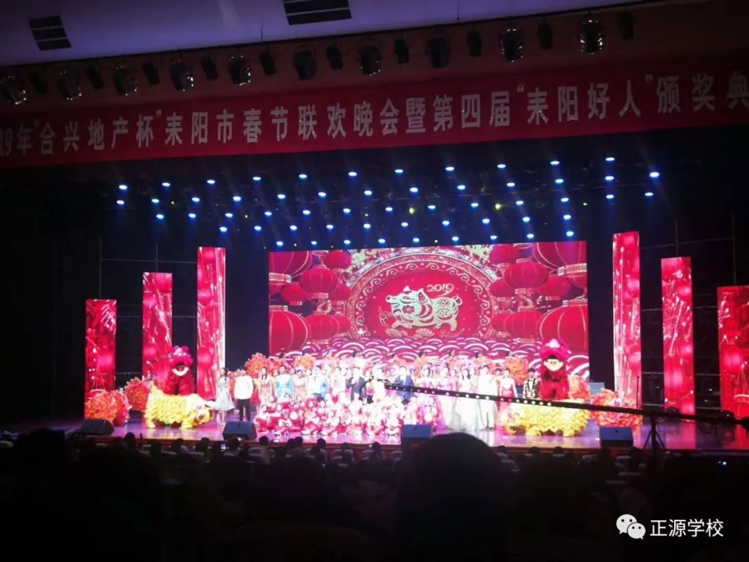 在中华民族传统节日己亥猪年春节即将到来之际,耒阳春晚给耒阳人民一道视听大餐。正源学校作为中华传统文化衡阳市传承基地,多次参与市里的大型活动。在2013年耒阳市春晚舞台上,正源学校96人参演的《金蛇狂舞闹新春》曾获耒阳广大百姓交口称赞。