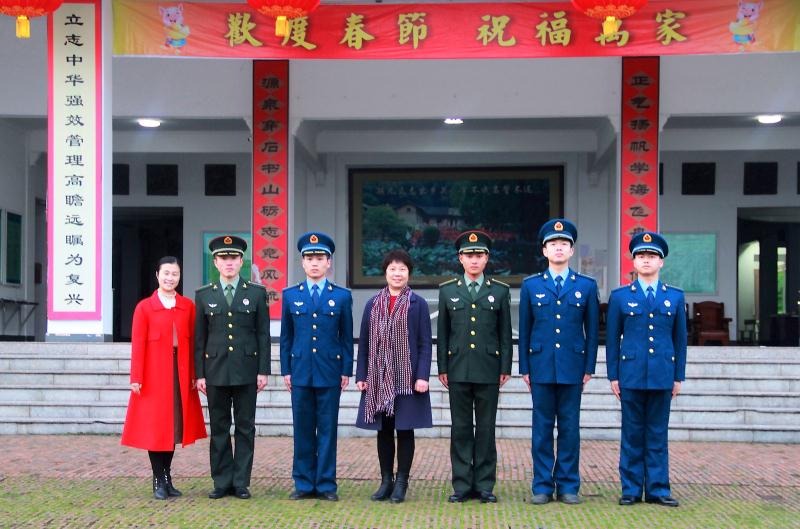 下午共有5名军校学生回母校,分别是2016年考入陆军装甲兵学院的文豪、2017年考入空军航空大学的黄新宇、2018年考入空军工程大学的肖添云、2018年考入空军航空大学的罗威和2018年考入陆军炮兵防空兵学院的刘杰。还在学校坚持工作的学校董事会梁晓芬老师和招生办李丰主任,热情接待了这批可爱的兵哥哥。