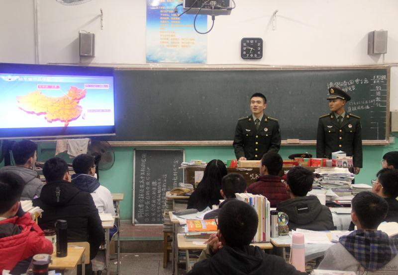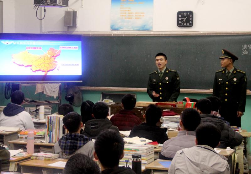 完成第一个任务后,五名军校学生继续执行学校指令,回母校给学弟学妹们讲讲考军校的“那些事”。晚上六点四十,罗威、文豪等五个兵哥哥兵分三路,分别走进高三教室和同学们面对面交流。面对帅气的学长们,学弟学妹们问起问题来锋芒毕露,毫不客气。从学习方法到军校体检要求,从近视眼能不能报名到现在学校生活好不好等等问题,从巨到细,从面到点一个都不放过。学弟学妹的激情一浪高过一浪,几个兵哥哥也是稳如泰山,一一回答,时不时还讲讲军校趣事,现场气氛活跃欢畅。