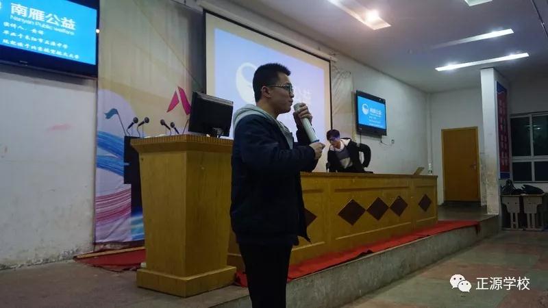 2月13日晚7点,由南雁公益组织的“用一场演讲点燃一颗心”主题演讲活动在我校报告厅隆重举行。毕业于正源学校,夺得2018年高考耒阳市理科状元的黄详同学、文科状元曾俊熙以及来自多所大学的学长现身报告厅,为学弟学妹们传经送宝,加油鼓劲。