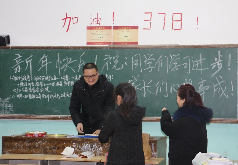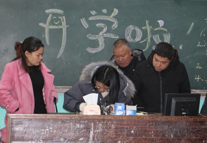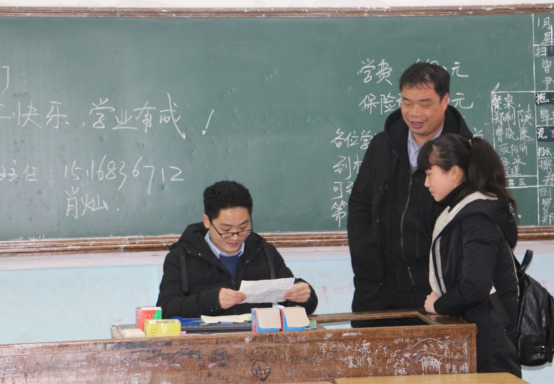 主教学楼大厅前两侧,十二块橱窗内容更换一新,催人奋进。大厅内面,早上七点多钟就有家长带着孩子从乡下赶来报名,人头攒动,热火朝天,几处缴费点却秩序井然。