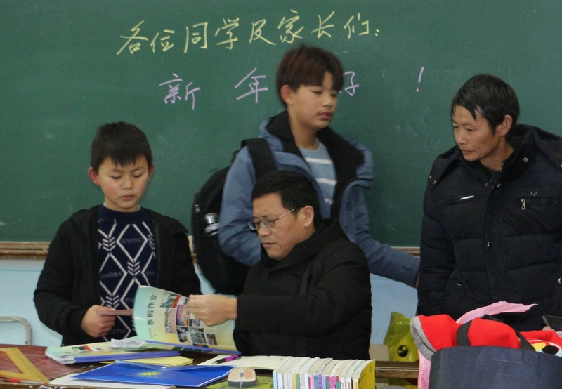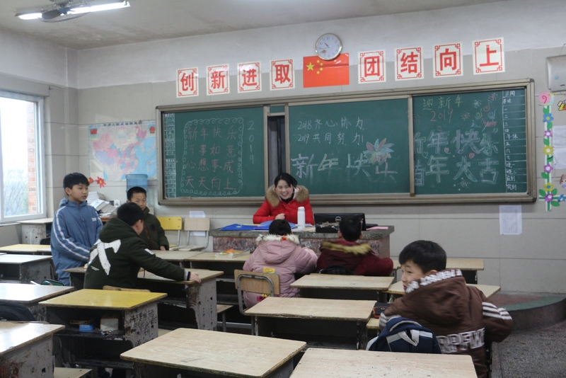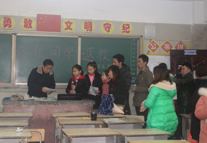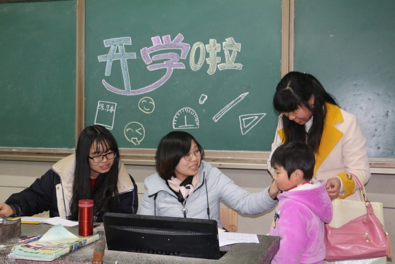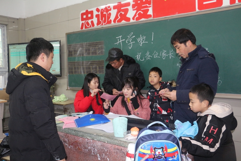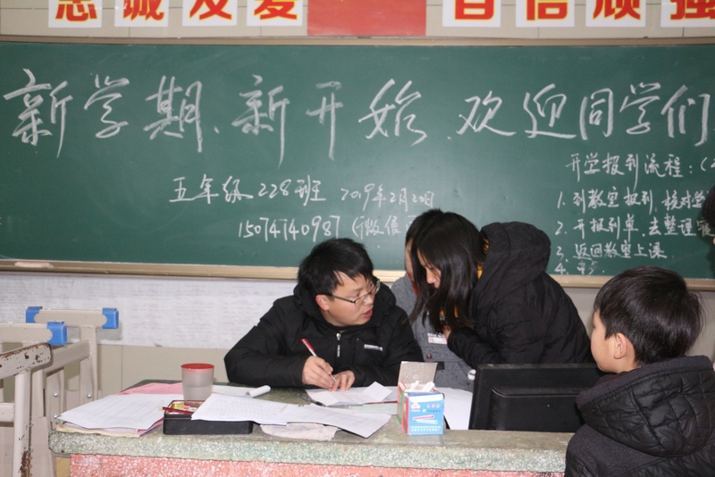各班教室黑板上写着各式各样的欢迎标语。班主任热情地接待着一个个来为孩子报名注册的家长。同学们小别重逢,格外亲切。有的在相互交流,有的在看电视,有的在看书,其乐融融。