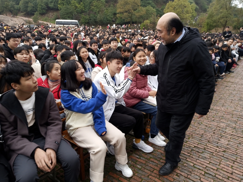 高三每一位老师忠于职守,甘于奉献,与同学们风雨同舟,为同学们摇旗呐喊,闻鸡起舞唤来日出东方,披星戴月送走似水年华,他们用汗水育出桃李芬芳,用心血点亮一个个梦想。谢海鸣代表高三老师发言。