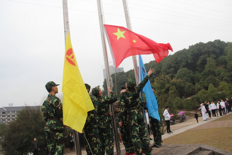 踏着激越奔放的出旗曲,七名国旗手雄赳赳、气昂昂,步履铿锵,健步走向国旗台。《义勇军进行曲》慷慨雄壮,一面鲜艳的五星红旗和两面正源校旗在全体师生的起立注目中,徐徐升起,迎风招展,辉映晴空!