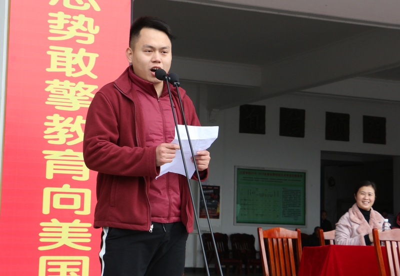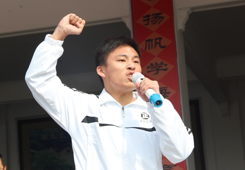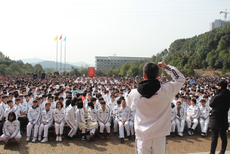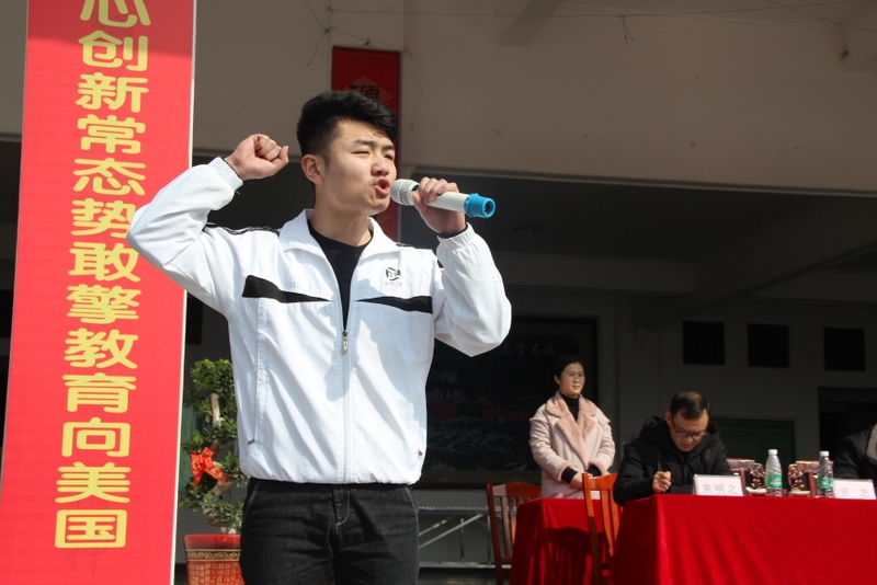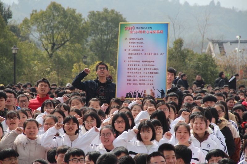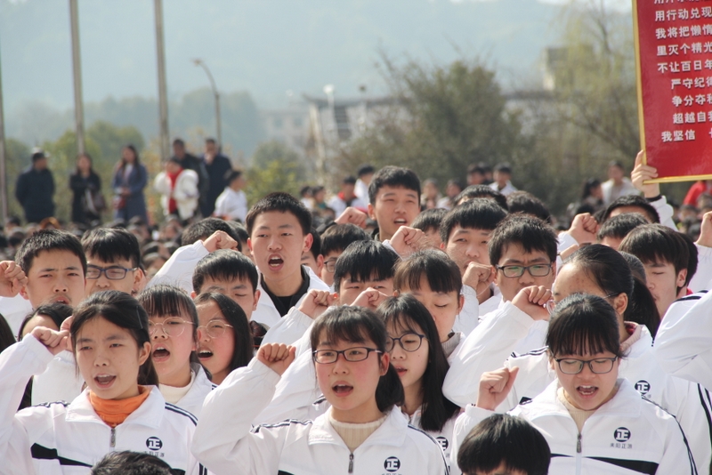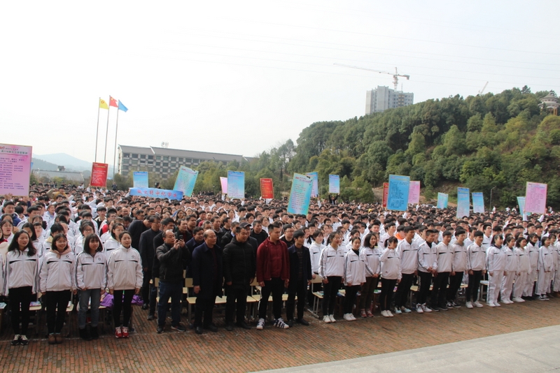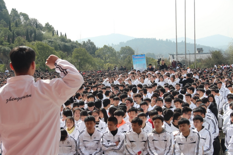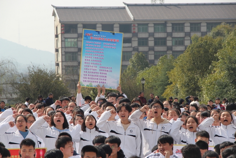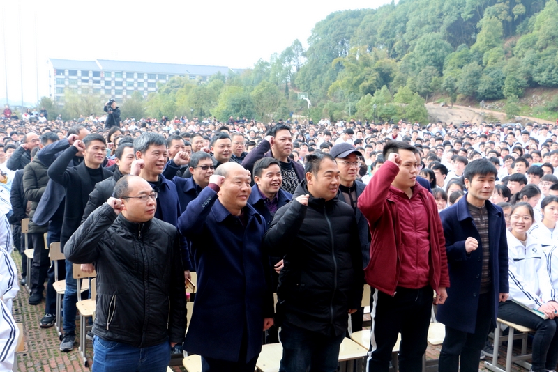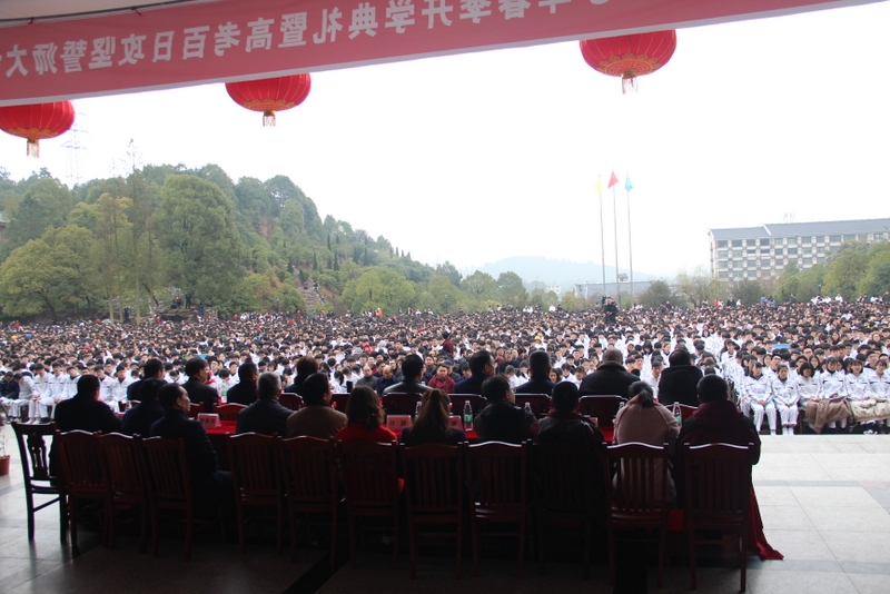 “亲人的目光、父母的期盼,他们在远方等待着我们六月的捷报,我们只有在这最后的一百天里奋发图强,才能不让辛苦劳累的父母们失望。决战100天,600分不是梦,重点大学不是梦,本科大学不是梦!”高三学生代表伍振旗发言如是说。