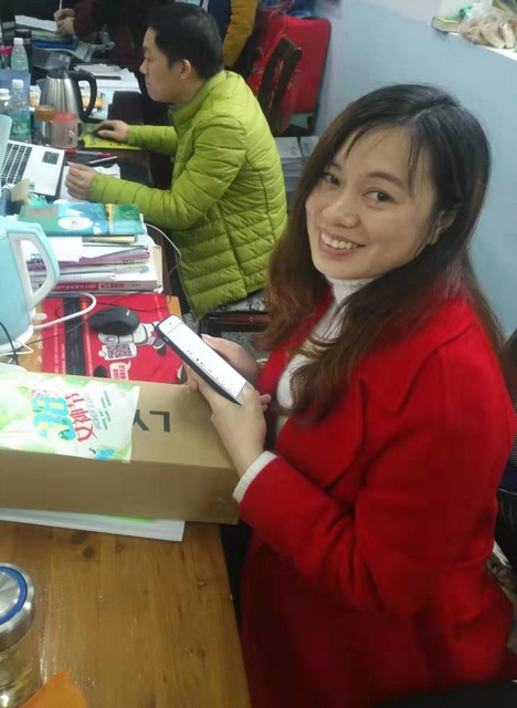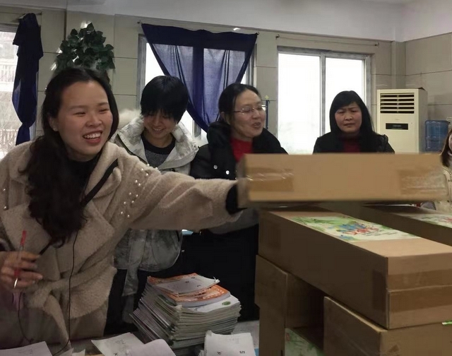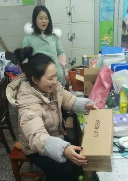 生活老师领到礼品,欢呼:节日快乐!