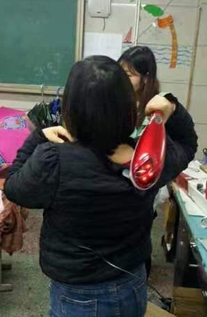 “平日教学生,辛苦了!今天过节日,帮你揉揉背!”