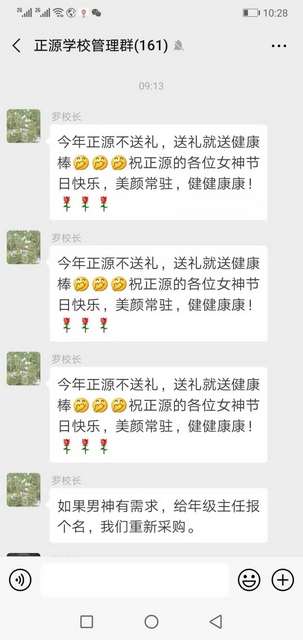 一年一度妇女们特有的节日,对于每年都有意外欣喜的正源女神们来说,今年又有什么盼头啊?罗校长及时发话了: