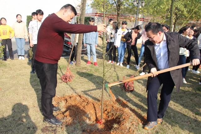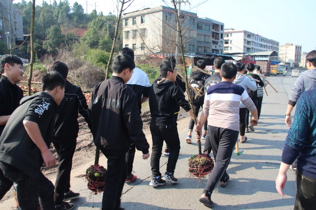 3月12日下午,春暖花开,艳阳高照。在41个植树节日子里,学校党支部组织全校党员教师和初三年级 、准高一年级部分班级学生近二百人来到耒阳市消防大队,与官兵们一起开展义务植树活动。