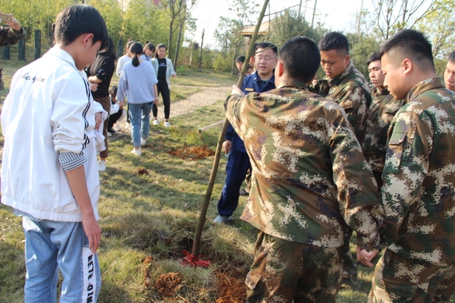 同学们从学校自带树苗,一路欢声笑语。进入消防大队,师生和官兵集合列队,学校党支部书记毛小波和消防大队大队长肖伟分别发表简短讲话。肖大队长代表消防大队全体官兵热烈欢迎师生们的到来,他说,正源学校与市消防大队是军民共建单位,今天把党建活动安排在这里,组织全体党员和部分学生来这里植树,对党员是进一步提高思想觉悟,增强党性,对学生既陶冶情操,又培养动手能力、增长知识。学校培养学生的目的,是要能应对今后实际生活中的问题,单凭口讲是不行的,要学会实际动手。洞要挖多大,树要栽多深,有老师们指导,这也是一种学习。