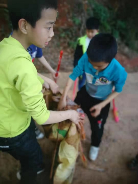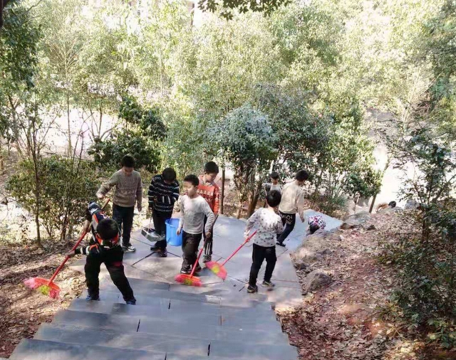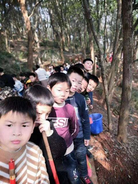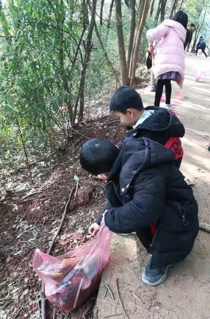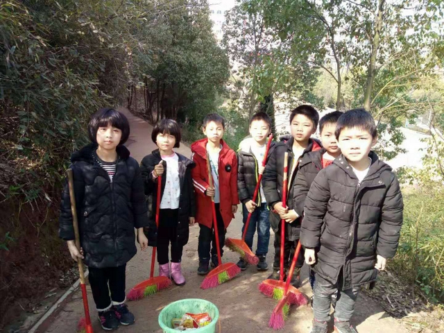 三月也是我校的学雷锋活动月。3月11日下午,小学部三年级11个班的同学在年级领导和各班班主任的带领下,带着扫把、垃圾桶等劳动工具,排着整齐的队伍来到学校西山,掀起了一股学雷锋的热潮。同学们以班级为小组对学校西山半腰的道路进行了一次认真地清扫。看,男同学像出征的战士一样,挥动着手中的武器——扫把,把小道上的“敌人”——枯枝败叶清扫成堆,然后装进自带的垃圾桶;女同学仔细地捡拾小道两旁路人随手留下的饮料瓶、废纸屑……经过同学们热火朝天的战斗,西山的林间小道焕然一新。同学们像打完胜仗的战士,排起长龙,带着收获的战利品——垃圾,雄赳赳、气昂昂,高唱着《学习雷锋好榜样》走下西山。