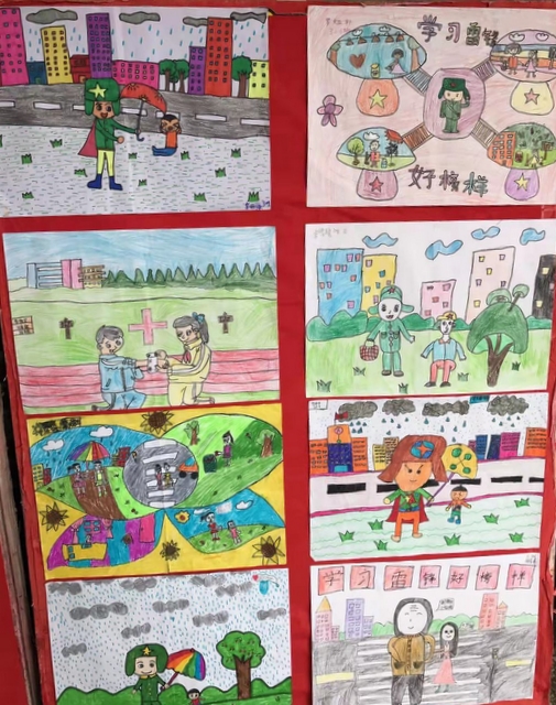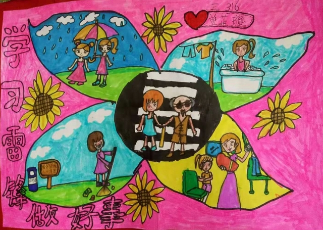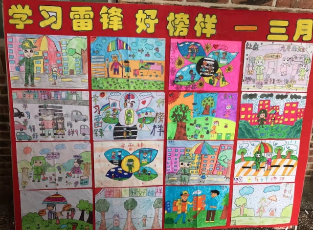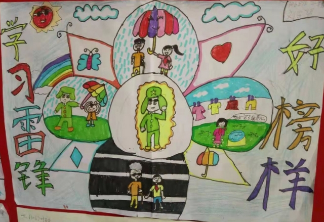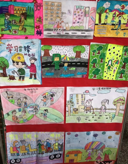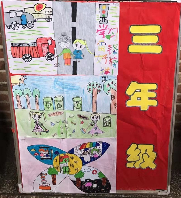 此外,三年级还同时举办了学雷锋绘画作品展和学雷锋主题班会活动。