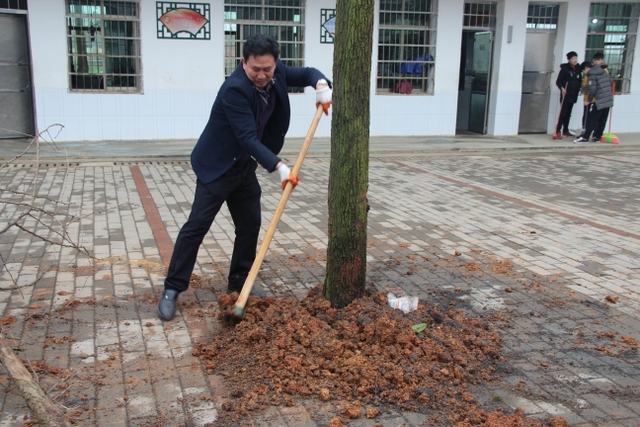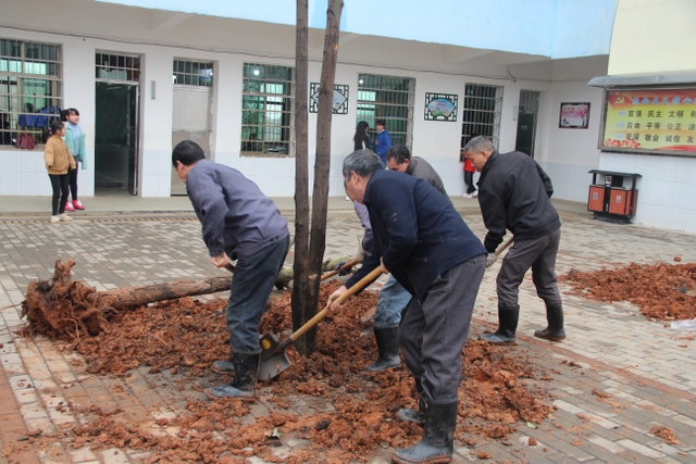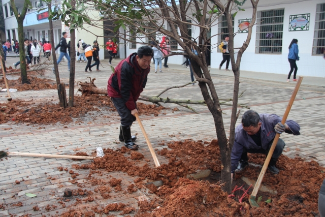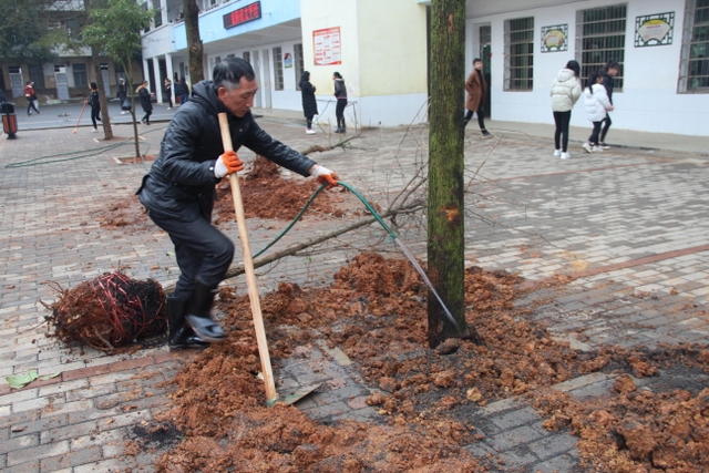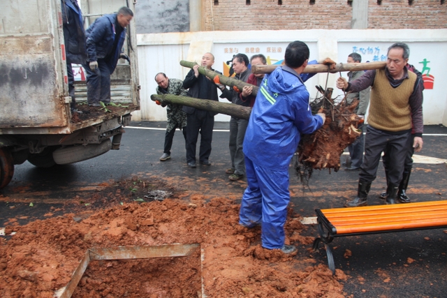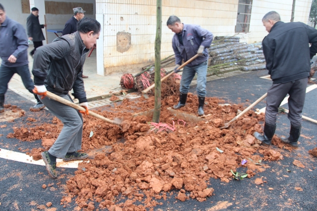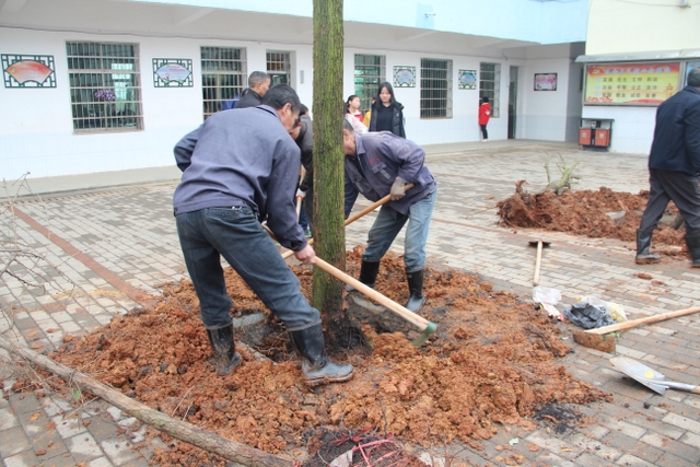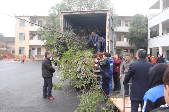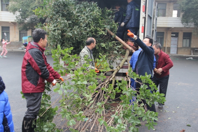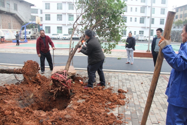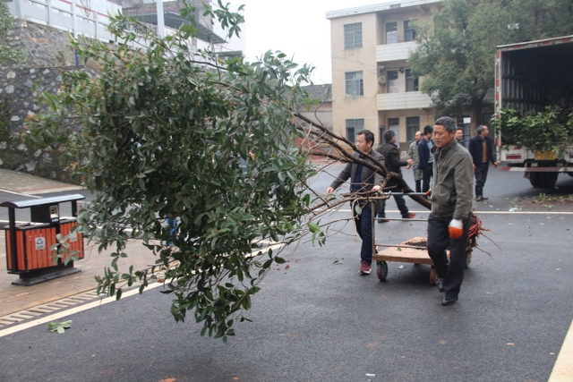 3月14日,正源学校十几名绿化队职工带着罗校长的殷殷嘱托,带着两车树苗,来到太平中学,开展义务植树绿化活动。