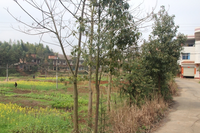 返校前,在贺主任的引导下,我们去查看了去年学校在太平乡政府后面太团路两侧栽植的香樟树,郁郁葱葱,一束一束的嫩芽正昂首上长,一片生机。