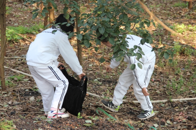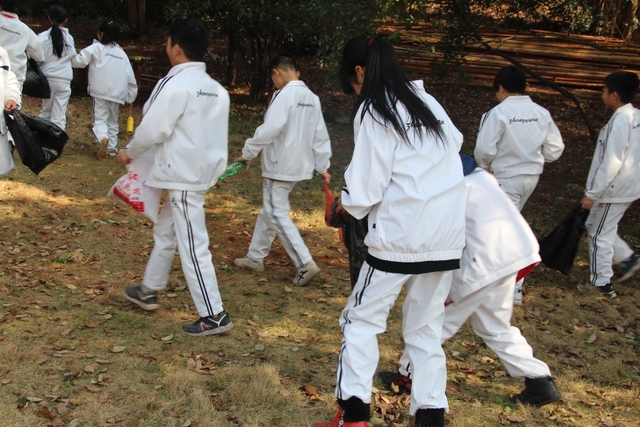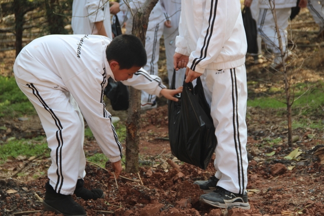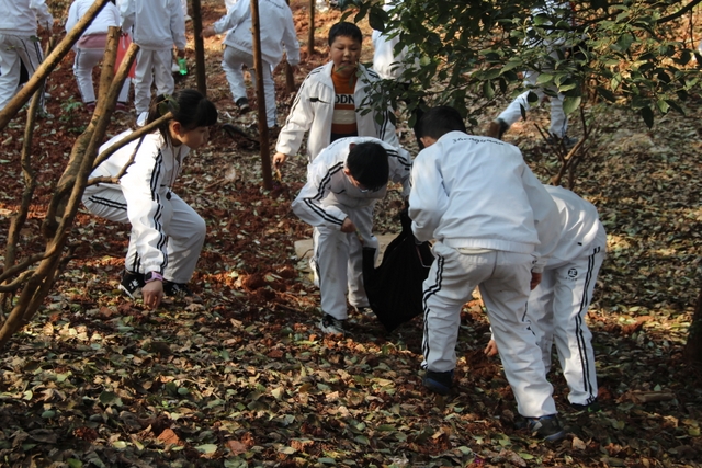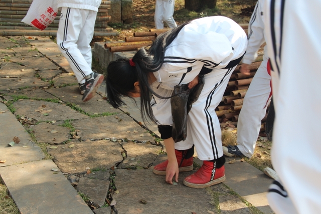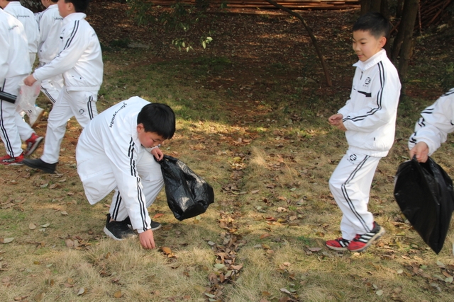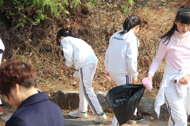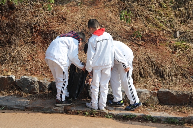 老师们在旁边微笑着帮助我们把垃圾准确的放到袋子里,还帮我们拍下一张张照片,记录下这有意义的时刻,连我们周围的植物,都迎着风,朝我们挥动他们纤细的双手,仿佛在说‘谢谢你们,亲爱的小天使们!’”