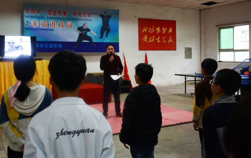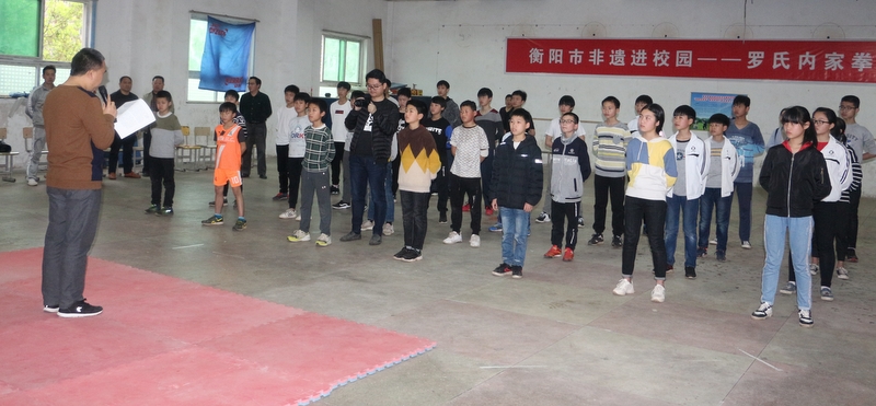 3月27日下午,衡阳市“活态传承”系列活动“非遗进校园——罗氏内家拳”启动仪式在正源学校举行。初中部30余名罗氏内家拳爱好者参加仪式。
