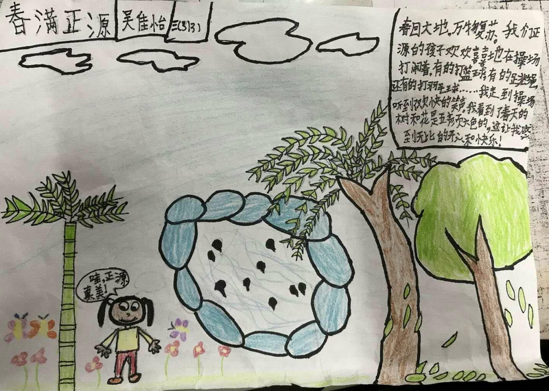 冬去春来,温暖的阳光照耀着大地。校园里百草返青,天空中小鸟在歌唱。花儿开不完,草儿长不断,正源的春天是画里五彩的世界。
