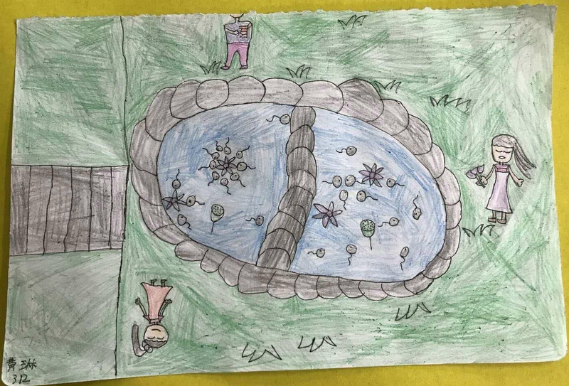 校园的池塘边、树林里:小同学在这里唱歌、跳舞;高年级同学在这里背单词、背课文、写生……