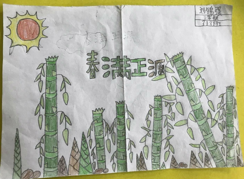 笋芽儿从土里伸出了头:“啊,太美了!我要赶快长成一棵高大的竹子,这样就可以看到更多的正源美景!”