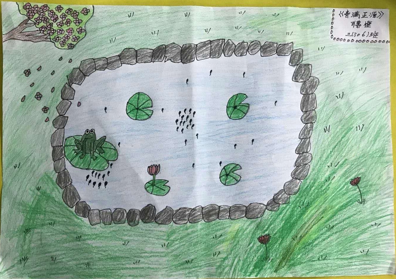 池塘里的水,清可见底。水里的小蝌蚪就像一个个小逗号,在快活地嬉戏。小鱼在水面吐着小泡泡,犹如一个个小句号。