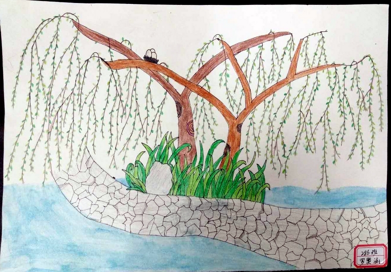 操场的前面就是学校最美的地方——池塘了,池边的小草换上了新的衣裳,笋芽芽钻出了土地,探出头来了,水中的鱼儿在欢快地嬉戏打闹,柳树在池水中照着镜子开始翩翩起舞。这时我不禁想起了一首诗来——《咏柳》:碧玉妆成一树高,万条垂下绿丝绦。不知细叶谁裁出,二月春风似剪刀。不知诗人贺知章是否也是看到了这派景象才写下的这首诗。