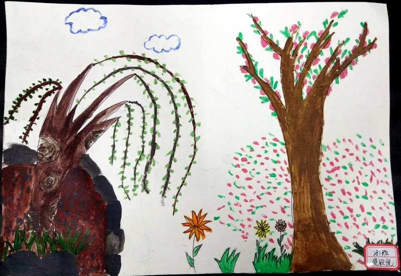 刚进正源学校,映入眼帘的便是一个大水池,旁边的柳树正披着一头柔顺的长发朝我们打招呼呢,像一个个少女正在微风中翩翩起舞。柳树旁边还有一朵朵迎春花,“春天来了,快醒醒,快醒醒”,迎春花欢快地叫喊着。快乐的迎春花也穿上了它那黄色的小裙子,唱起了迎接春天的小曲儿。这时,一阵微风拂过,迎春花也跟着扭动起腰肢来,在微风中翩翩起舞。迎春花对面是一片樱花树林,一棵棵樱花树上开满了粉嫩的樱花,樱花们你挤我碰,仿佛在比赛谁更美丽。一簇簇樱花聚拢在一起,好像一个粉色的大绒球。