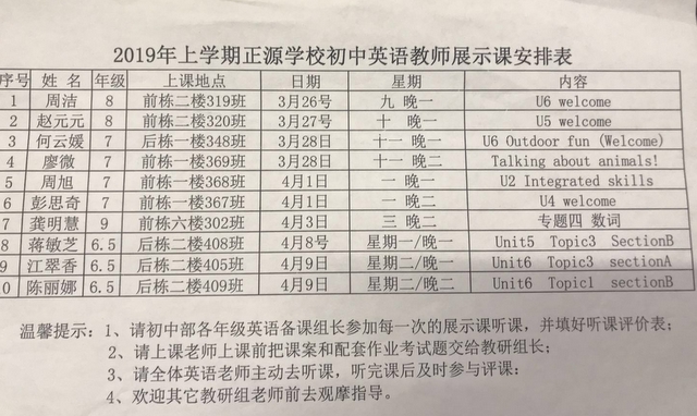 初中英语展示课自3月26日开始到4月10日圆满结束,为期半个月。这些朝气蓬勃的青年教师们,以丰富多彩的课堂表现,为美丽的春天添上了绚烂的一笔,唱出了清脆的一曲!