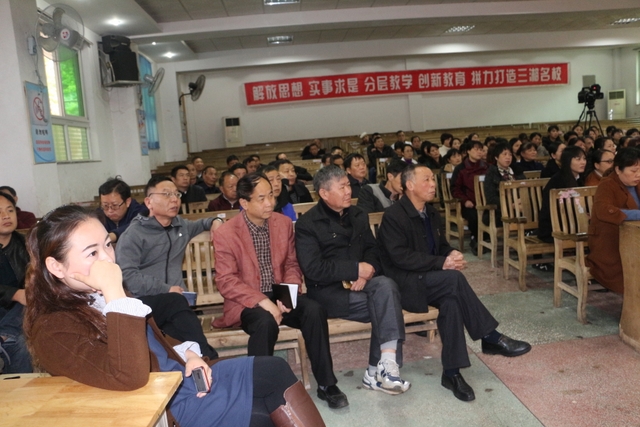 校长助理谷呈祥主持讲座。德育处、后勤处、宿管处、食管处、综治办等部门负责人,以及各食堂厨师等共一百余人参加了培训。
