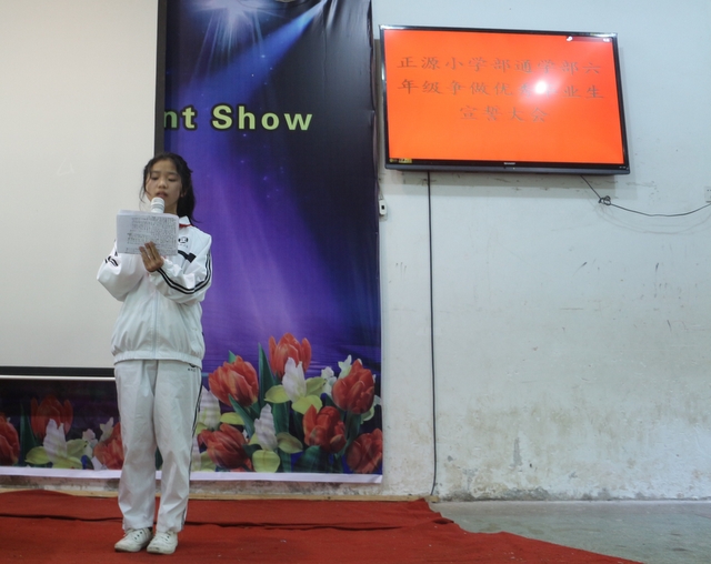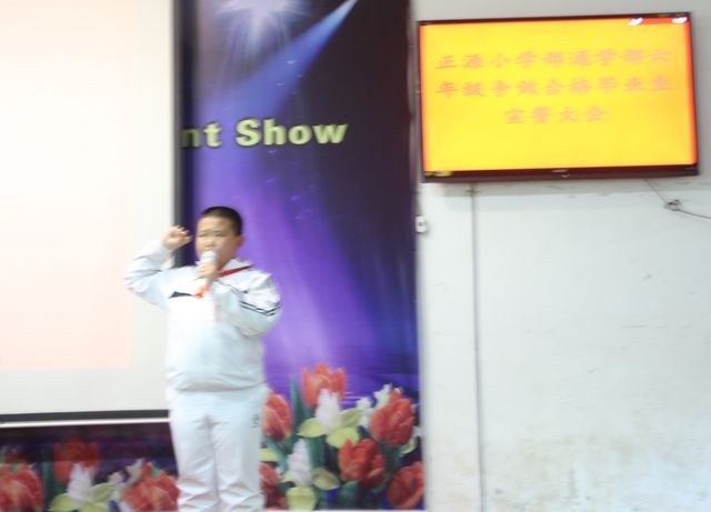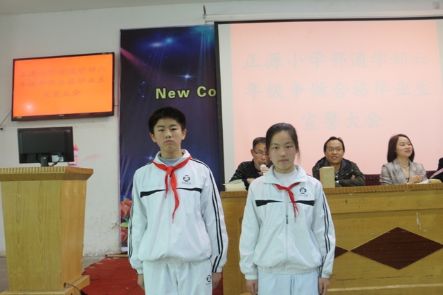 我们承载着祖国的未来,我们寄托着家庭的希望,我们铭记着老师的培养,正源学校是我们放飞梦想的起点!为了做一名优秀的小学毕业生,我在这里庄严宣誓:珍惜时间,挑战自我!勤奋学习,夯实自我!努力拼搏,超越自我!用进步激励自己!用成绩感恩父母!用行动回报老师!为实现自己的理想而奋斗!为给学校增光添彩!