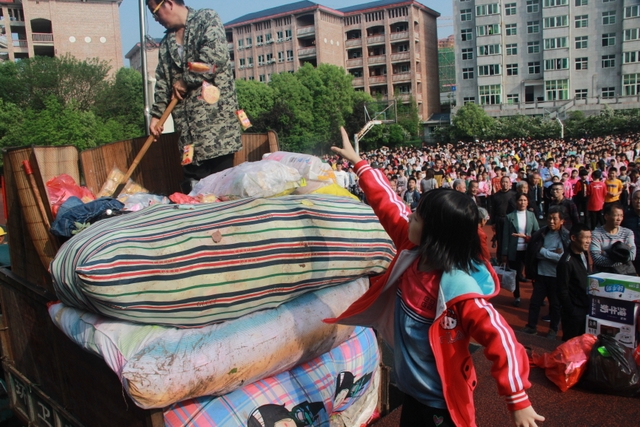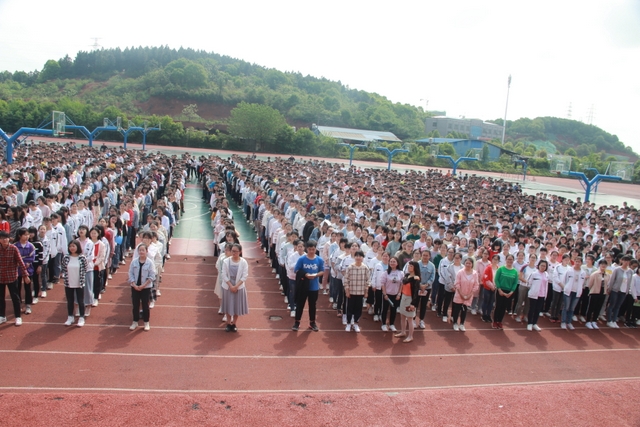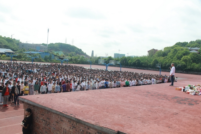 与此同时,初中部全体学生汇聚在中学生运动场,参加警示教育。学部副主任肖长科将 地上的垃圾食品拿在手上,以实物为例,给现场学生上了生动的一课。学部主任曾良古通过列 举各种垃圾食品伤人事例,大篇幅讲述了垃圾食品对身心的伤害是不可估量的,再三强调学校 六大禁令绝不可违。