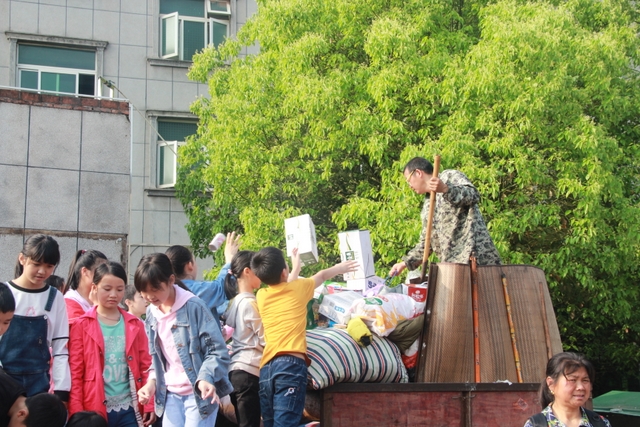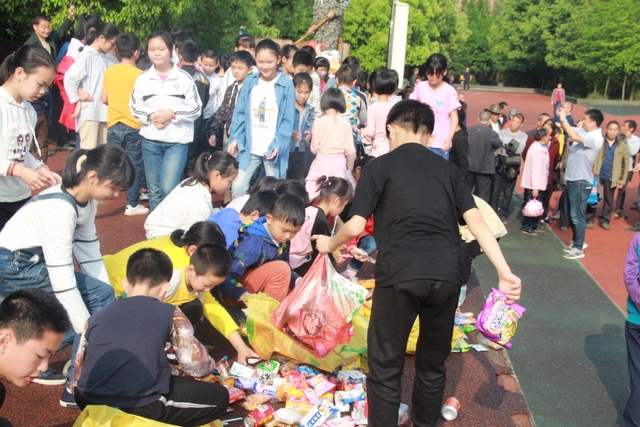4月19日上午,由学校德育处组织,全校各年级组织开展“拒绝垃圾食品进校园”警示教 育活动。