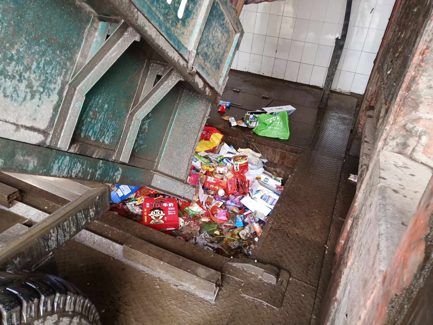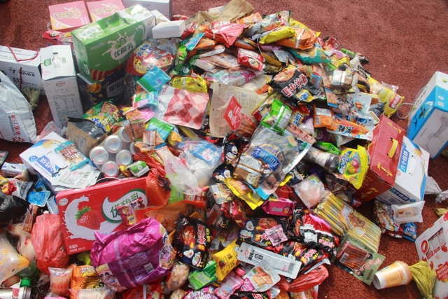 警示教育结束后,学校环卫处工人将近期所有收缴的垃圾食品运至垃圾站销毁。