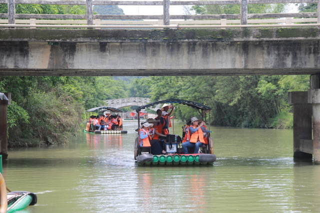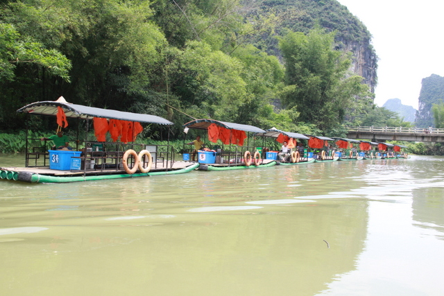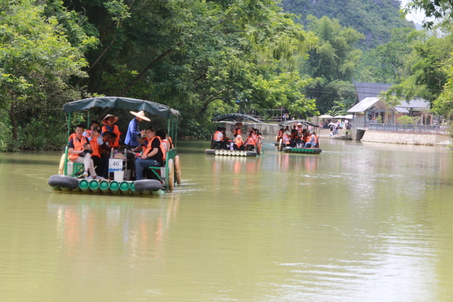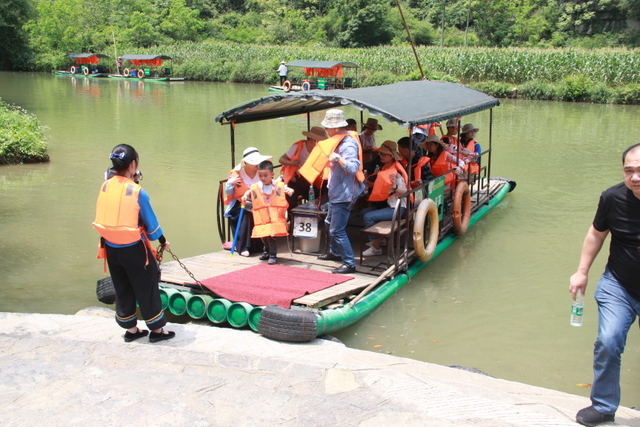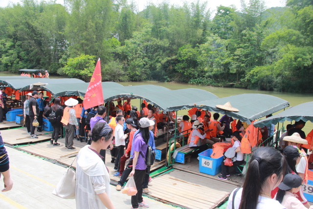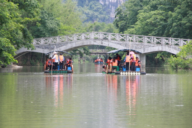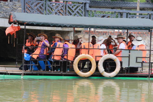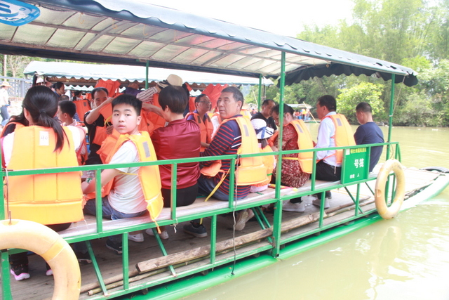 中午时分,正源学校教师2019广西之旅团队抵达名仕田园,这里青山绿水,相互辉映,形成许多秀丽景点,而最为人称道的,莫过于明仕河。这里翠竹绕岸,农舍点缀,独木桥横,稻穗摇曳,农夫荷锄,牧童戏水,风光俊朗清逸,极富南国田园气息。在这里,正源学校的教师们乘坐竹排,顺流而下,饱览两岸迷人景色。听壮歌、学壮语、赏壮美河山,正源学校教师们乘坐的10艘竹排穿行在“长留仙境”之中,也留下了正源学校的青春与激情。