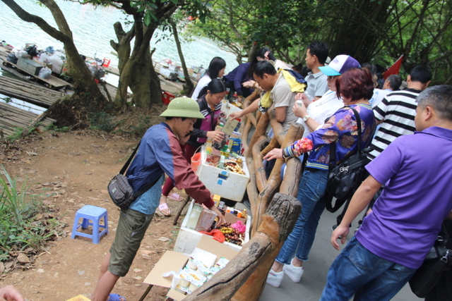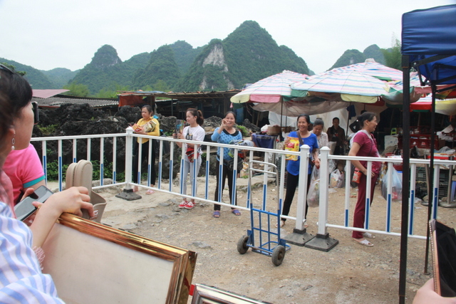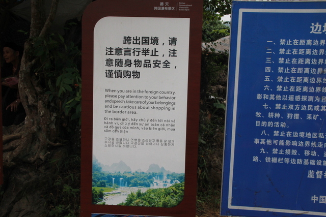 这一独特的边贸现象在经“德天跨国瀑布”牌楼处步行后,有了更加直观的感受。越南人趴在步行道的栏杆外侧,架起一个个小摊,向过往的中国游客卖力的兜售自己的商品,有越南产的“中华烟”,也有越南酸奶,还有许许多多样式纷繁的农产品。