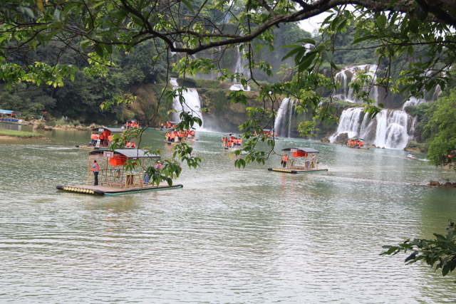或乘坐竹排,或缓步前行,站在瀑布脚下,大自然的壮美总是那么的令人陶醉。